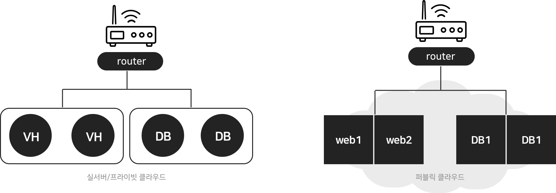하나의 서버를 사용하여 가상계정 혹은 가상 서버를 사용하여 서비스 및 개발환경을 구성하는 단계